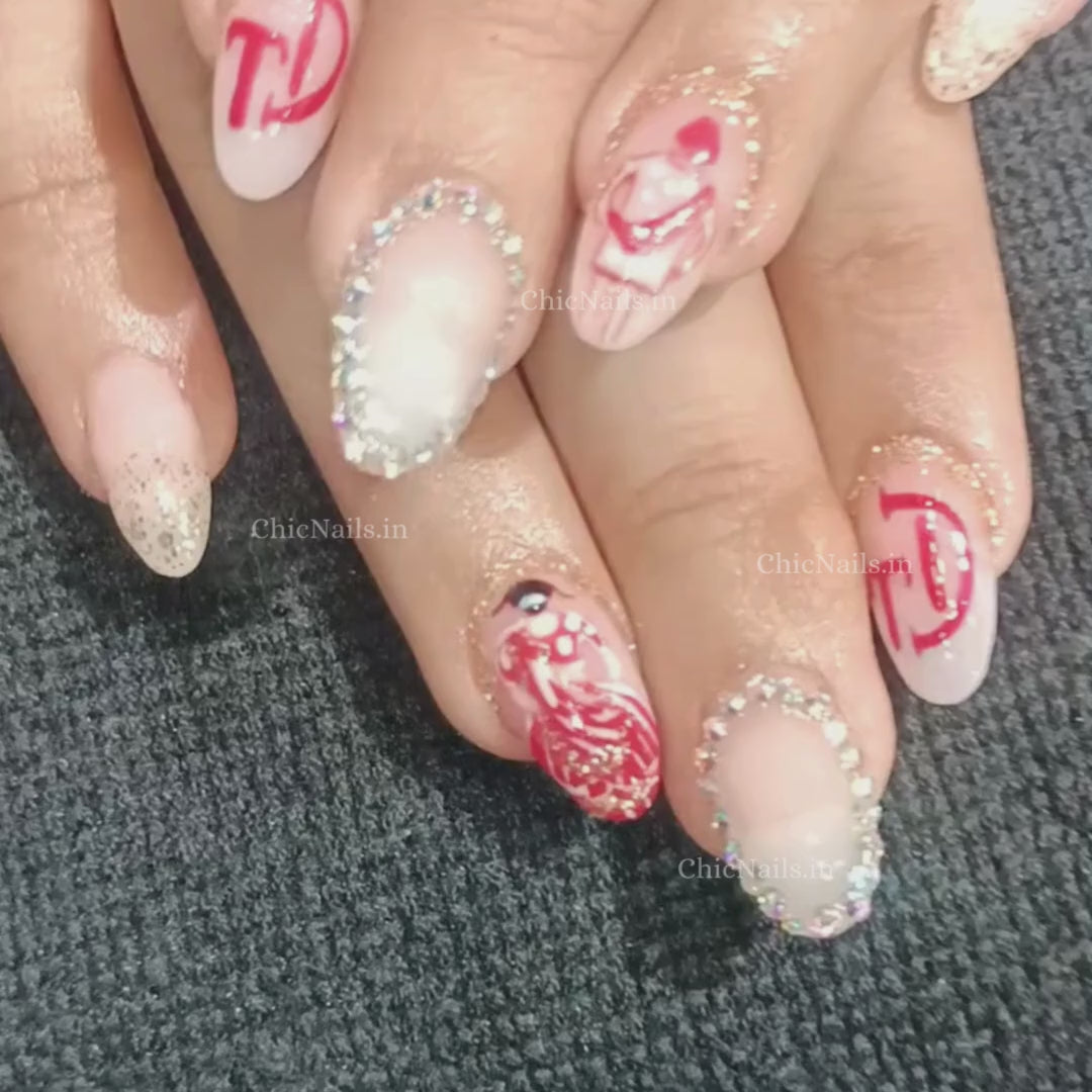 Customize your nails with the initials of the bride and groom for a personal touch ✍️💖. (Whatsapp on +918766312128 to customize your initials.)
